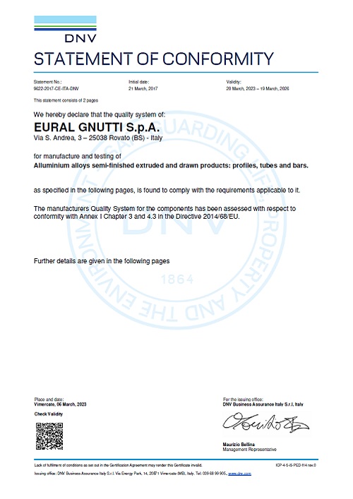 Certification of product: The Pressure Equipment Directive 2014/68/EU 'PED'